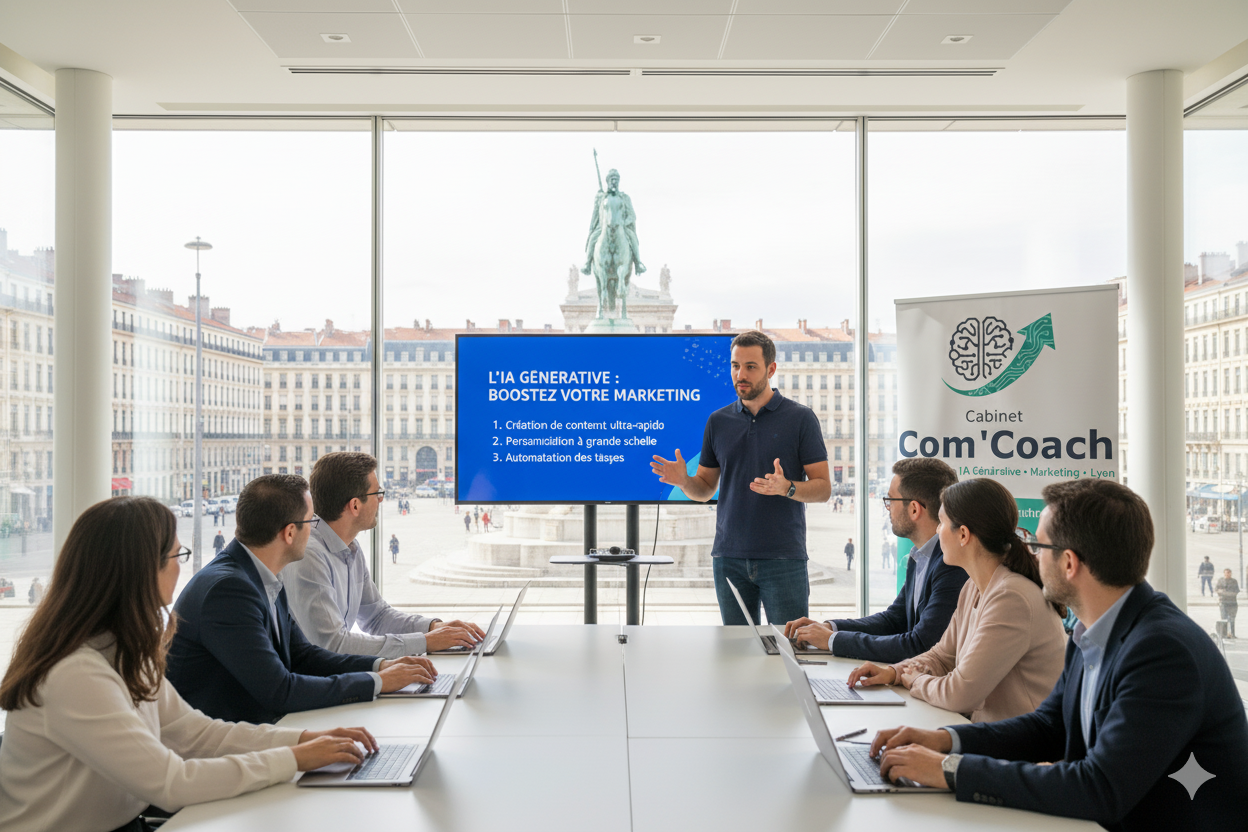 J’ai fondé le Cabinet Com’Coach en 2009 pour accompagner les professionnels du conseil et de la formation à développer leur clientèle. J’ai décidé de pivoter en 2023 pour proposer des formations en IA Génératives aux collaborateurs des entreprises sur Lyon et sa région.